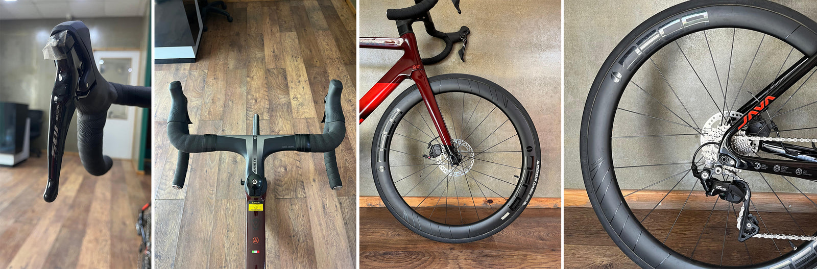 Java's designs are cutting edge and futuristic with smooth welding of the tubes. The Bicycle I tested came in a blood red glossy finish frame with Dark black as the secondary colour. The flat aero tube profiles along with the bladed carbon fork and an integrated seat tube clamp immensely enhanced the aesthetics of this Road Bike.