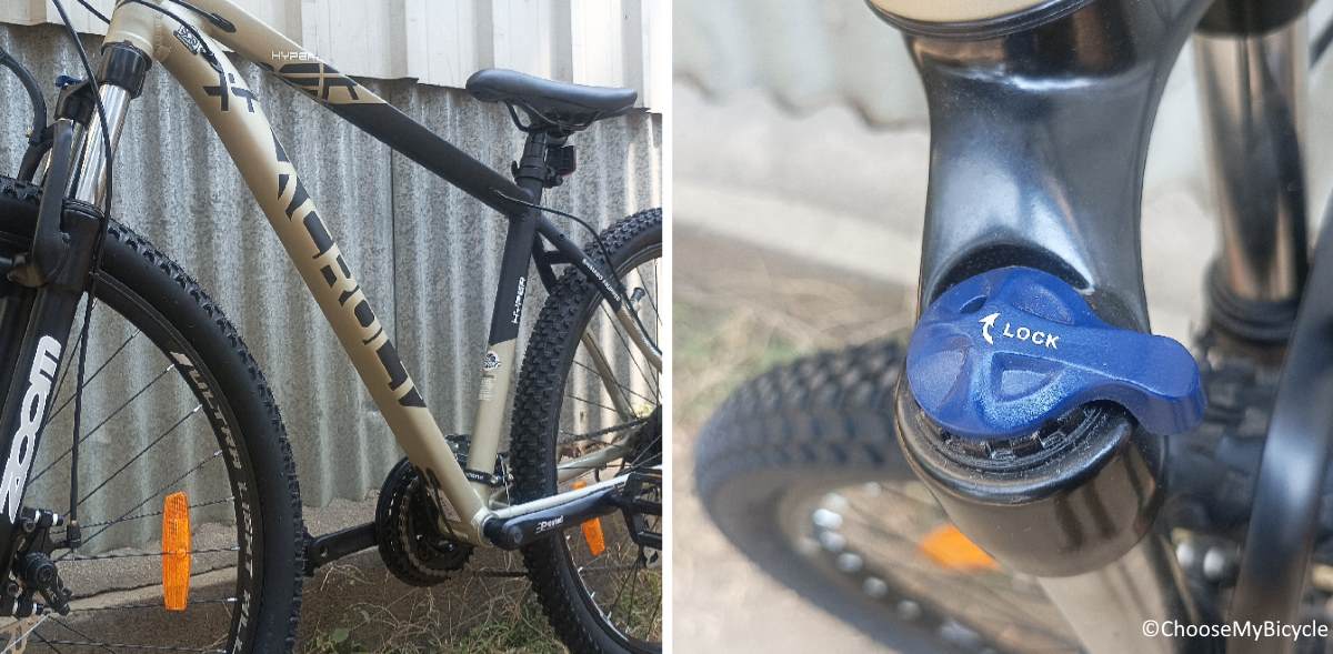The 100mm travel which helped tackle bad roads and bumpy surfaces on flat trails easily.