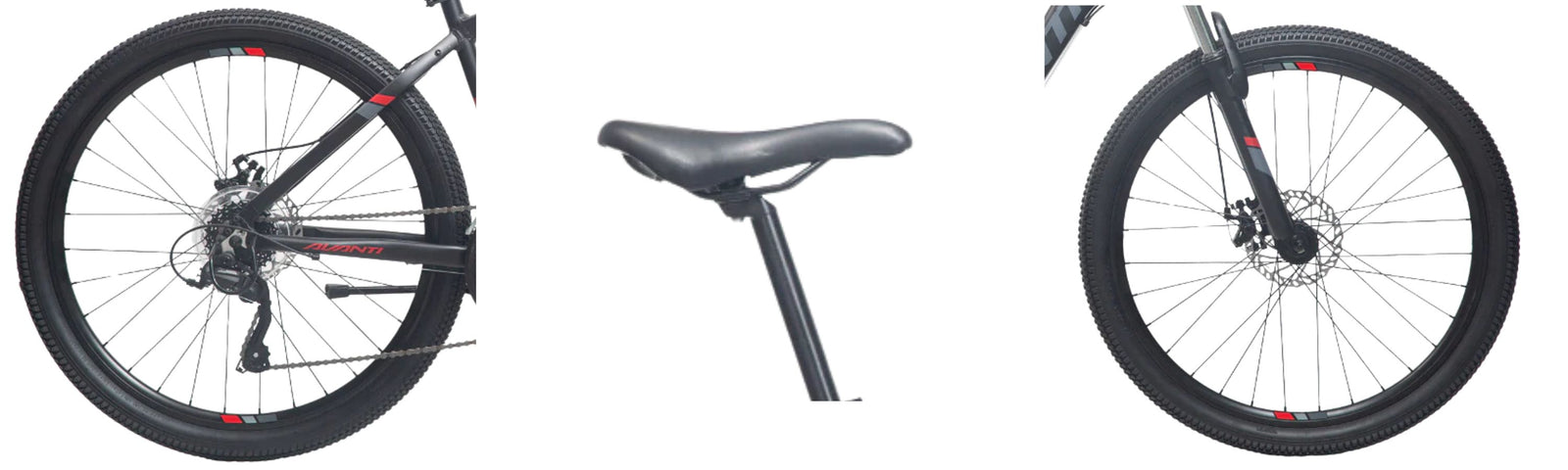 The alloy frame feels light and responsive, making it easy to handle in traffic and on trails. Geometry is upright and confidence-inspiring, perfect for beginners. Clean graphics add a premium touch.