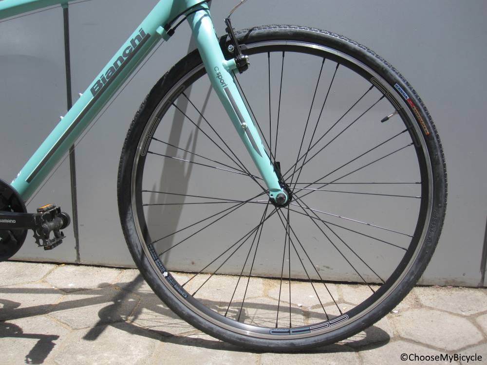 The Bianchi C-Sport 1 (2017) is built on an alloy 661 frame which is double butted. The butting and welding tech used has made sure this frame is light and best suited for zipping on urban roads and long distance rides. The welds on the edges of the tubes are so smooth making them less evident. There are places on the frame where extra material is used to handle the vibration of the surface. The frame geometry is a bit aggressive while not reducing the comfort level which makes this bicycle a joy to ride.This bicycle comes with a rigid front fork made of alloy. They are shaped neatly and are strong enough to contribute to the stable handling of the bicycle.