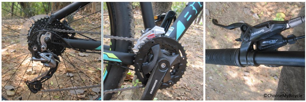 The Bianchi Kuma 29.2 is a 27-Speed bicycle that comes equipped with a Shimano Altus Front Derailleur and a Shimano Alivio Rear Derailleur whose shifting is controlled by Shimano Altus shifters. The derailleurs worked effectively to enable smooth, seamless shifting without a hint of any lag or delay in changing from one gear to another. The shifters were quick to respond and in transmission. The wide range of gearing options makes this bicycle a perfect all terrain bicycle. This range will enable easier climbing, requiring less efforts and more controlled, stable descents. The placement of the shifters enabled easy, comfortable access.