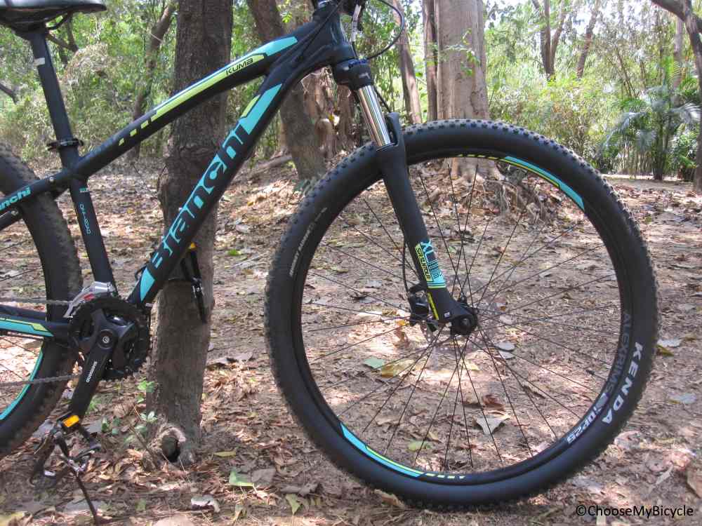 The Bianchi Kuma 29.2 comes equipped with a pair of Kenda Honey Badger 29” x 2.2” tires which are attached to Alex DP 2.5 rims. The threading on the tires ensured stability while cornering, even on rather sharp turns. Additionally, the spacing of the threading ensures that the bicycle will be stable and with enough traction to handle wet and slippery riding conditions. The stability offered by these tires are great for intermediate - intense trails. The wheels on this bicycle come with a Quick Release Option.The Bianchi Kuma 29.2 comes equipped with a TEC Rector Saddle. I found that the saddle was comfortable while on relatively less rugged trails and paths, however it could do with more cushioning to enable comfortable usage while riding on more intense trails, that are sure to transfer vibrations to the rider's sit bones. The seatpost comes with a Quick Release option to adjust the seat height with ease.