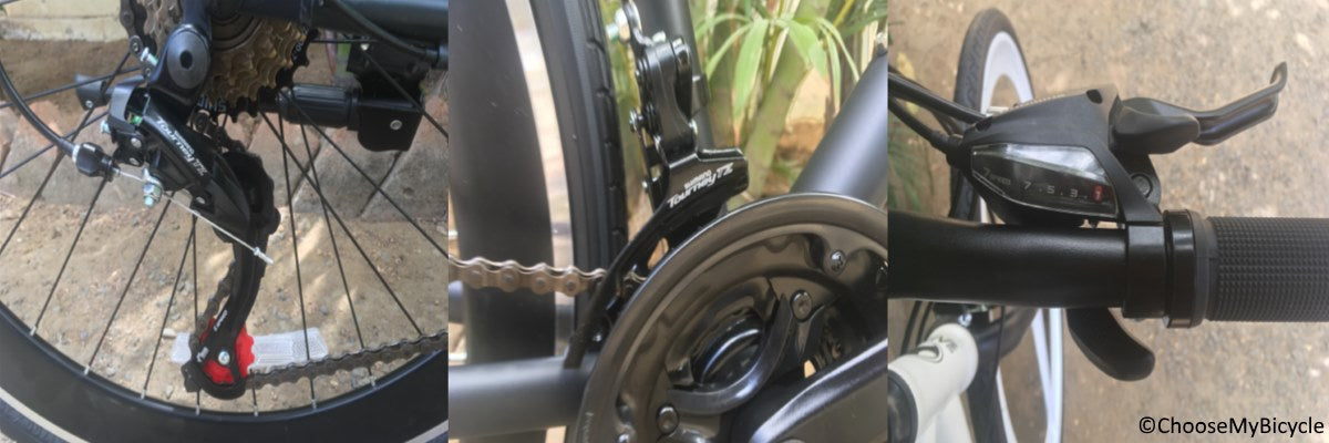 The Shimano Tourney TZ 3/5 21-Speed derailleurs were quick and smooth in shifting