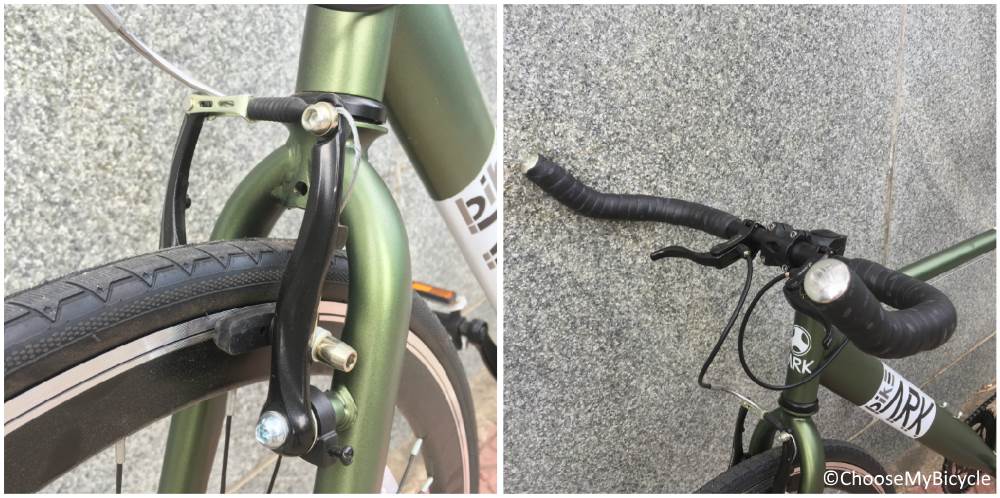 Internationally, a fixie bicycle does not come with brakes and the rider has to depend on jump stops and drags to slow down the bicycle. To make the fixie safer for Indian roads and traffic, the Bike Ark Fixie Orb comes with a pair of Z-star Alloy V-brakes. The brakes along with long arms and wide pads get the fixie to stop quickly and in a balanced manner.The Orb I test rode came with a bullhorn handlebar wrapped in a cushioned black bar tape. They were comfortable to hold on to and easy to navigate in traffic. There is a 6mm flat handlebar variant also available for this bicycle at the same price.
