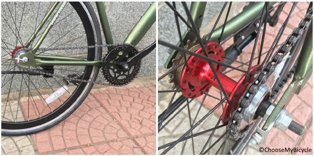 As in the name of this bicycle, the Orb is a fixie, which comes with Joy-tech flange flip-flop interchangeable hubs. These hubs help in changing the drivetrain between fixie and freewheel models. The fixie mode does take some practice to ride if you are a beginner but it did feel smooth to pedal and once the rhythm sets in it is easy to ride. There is no quick release at the rear for quick hub reversal but the nuts are easy to remove and put back using a spanner.
