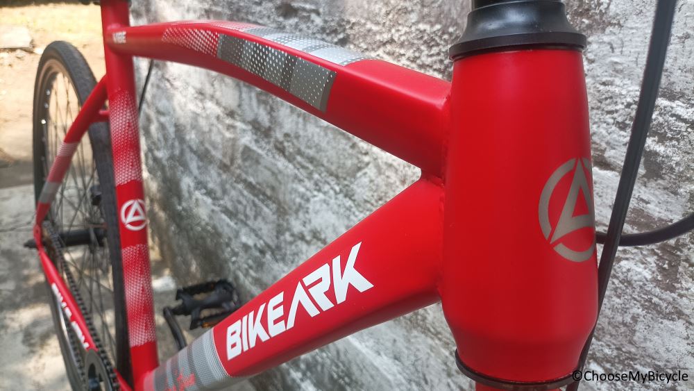 Bike Ark have always been known for their design, since their very first Fixed-Gear Bicycle models. The Vibe 7C Road Bicycle which we test rode came in a full Neon Red frame with Grey and White as the secondary colours for the graphics and text.