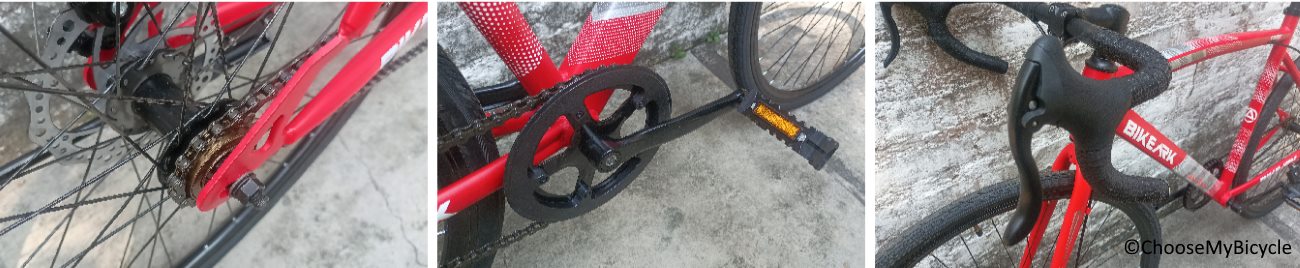 This Bike Ark Vibe is a Single-Speed Road Bicycle. This Single-Speed drivetrain with a 16T freewheel is standard like on any other Single-Speed Cycle. The pedaling was smooth and easy on flat city roads, although pedaling on inclines will be a little tough.