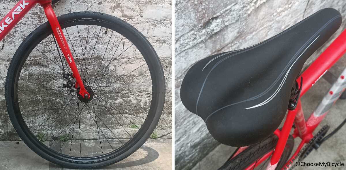 The 7x35c tires used on the Vibe SS Drop Bar are commonly seen on Hybrids. These tire dimensions and profile make this Road Bicycle very well suited for riding on urban roads.. They were slick and fast rolling and the tread pattern gave enough traction to keep the Bicycle safe on uneven roads.The ergonomic stock saddle was designed with perfect length, width and cushion to make sure the rider is comfortable on bumpy and long rides.