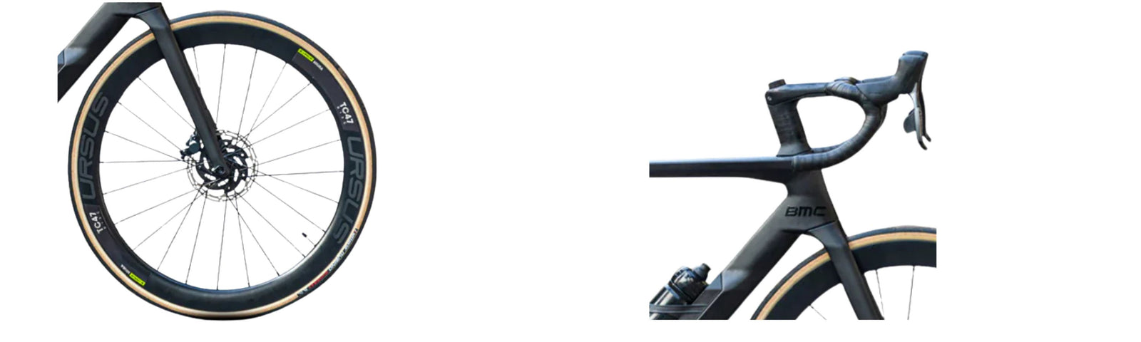 Most builds of this model come with deep-section aero carbon wheels (often 50–60 mm), perfectly complementing the frame’s aerodynamic design. These wheels hold speed with remarkable momentum and feel exceptionally stiff during sprints.