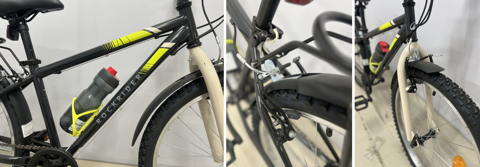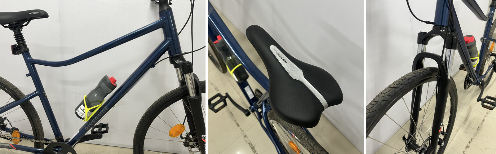 The handlebar setup is wide and supportive, the ROCKRIDER Sport ergonomic foam saddle cushions well, and the seat post is sturdy enough to handle shocks from the road.