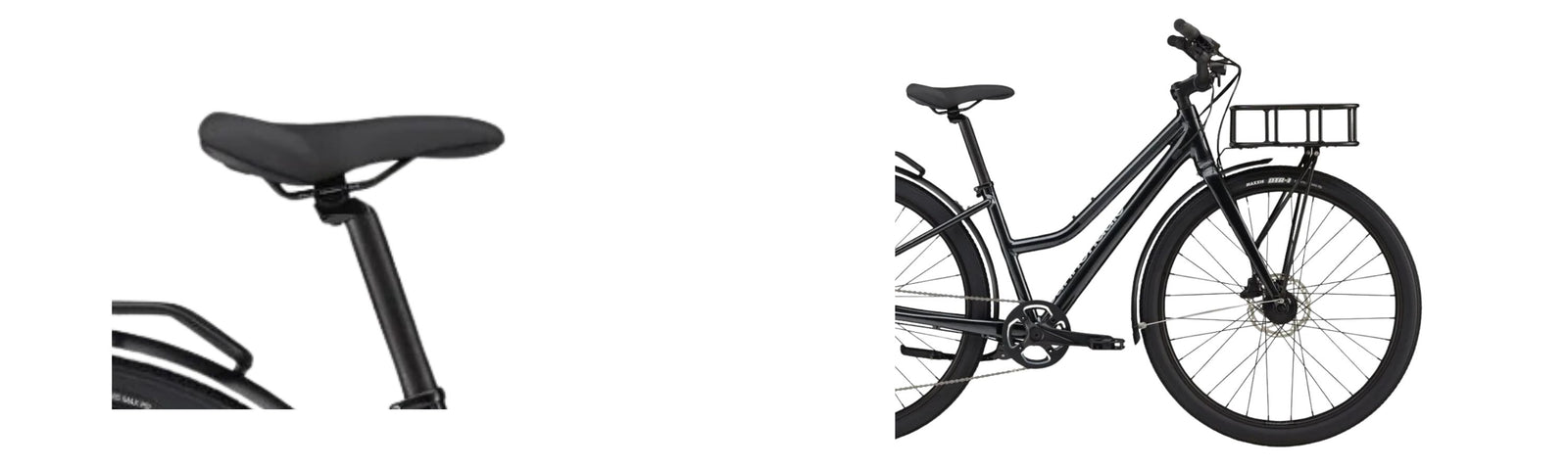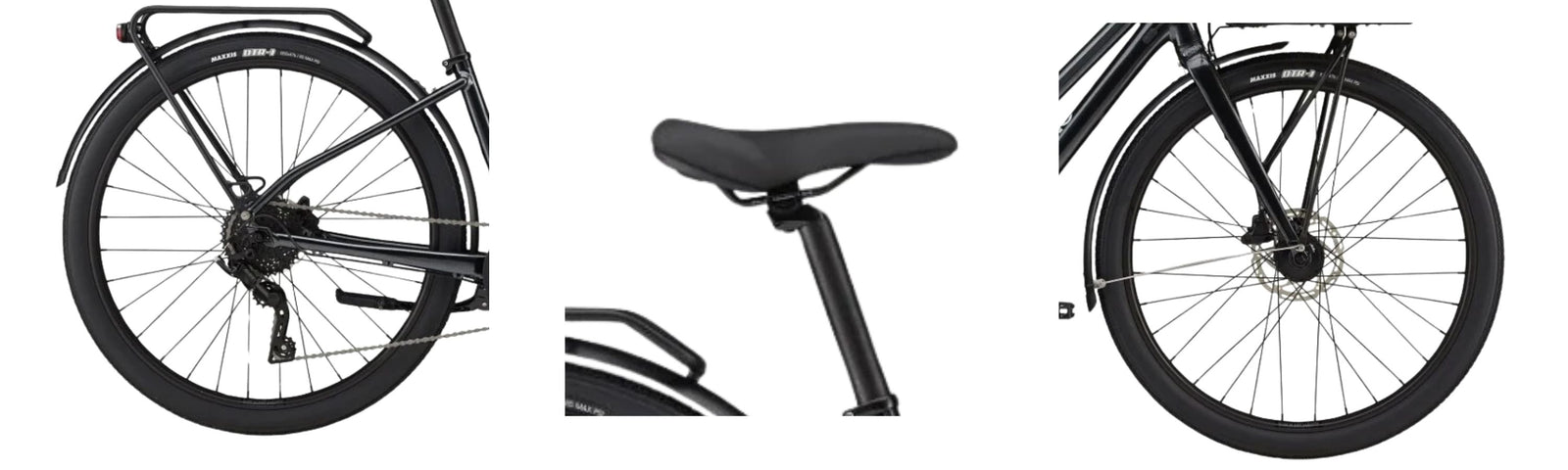 The 27.5″ (650b) wheels provide agility while maintaining stability. The Cannondale comfort saddle ensures support for daily commuting and casual rides.