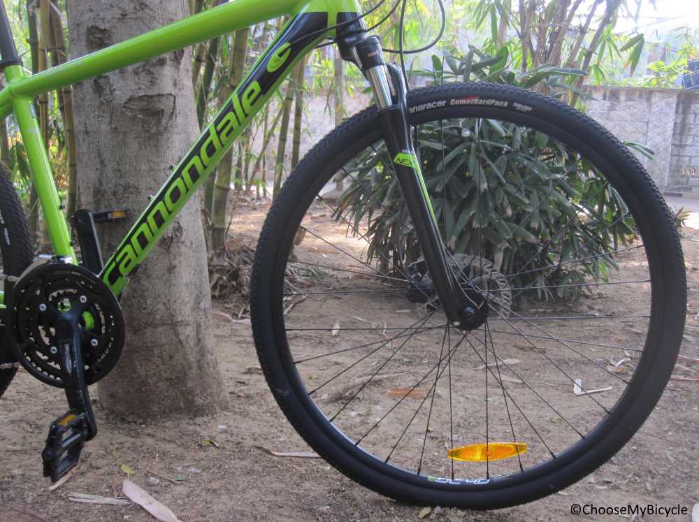 Cannondale have always been known for neat looking design and graphics. The bicycle I test rode came in the standard Cannondale green colour with black graphics. The smooth welds on the tubes and internal cable routing make the bicycle look neat. The gloss paint job was top notch.