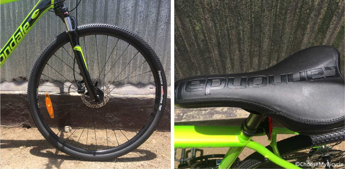 Panracer's Comet Hardpack 7x38C tires are the perfect all-rounder tires on the Quick 4 CX and same as the 218 version of this bicycle. Whether you are riding on gravel or commuting on flat roads these 7C tires had evenly spaced treads to keep you balanced. The wheelset was light in weight which helped in rolling faster. The Cannondale Quick CX Ergo Saddle was also ergonomically designed with enough padding to keep the rider soreness free on bumpy roads and flat trails.