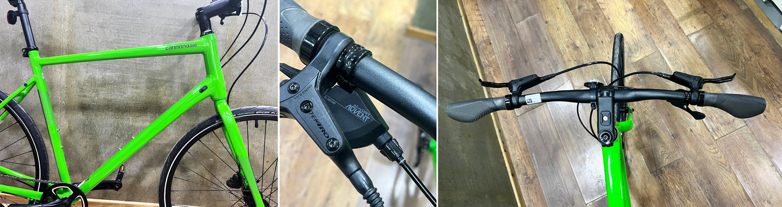 The Quick CX 4D features a lightweight SmartForm C3 alloy frame, renowned for its durability and responsive ride quality. Cannondale's engineering prowess is evident in the frame's design, which incorporates a custom fork crown that seamlessly integrates into the headtube, offering a refined and cohesive aesthetic.The frame geometry promotes an upright riding position, enhancing visibility and comfort during extended rides. Additionally, the inclusion of fender brackets and universal rack mounts underscores the bike's versatility, allowing riders to equip it for various needs, from grocery runs to extended tours.