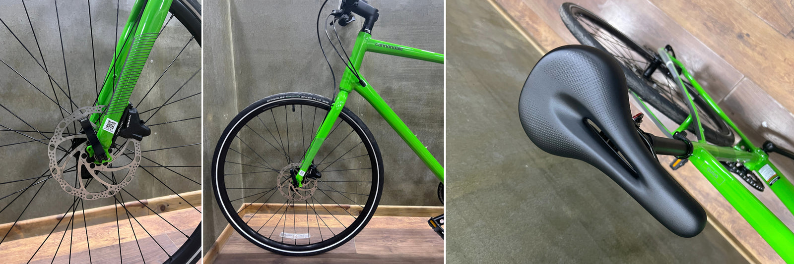 The Quick CX 4D rolls on 7C wheels, striking a balance between speed and stability. These wheels are well-suited for both paved surfaces and light off-road trails, embodying the bike's hybrid versatility.While specific saddle details are not provided, Cannondale typically equips its hybrid models with ergonomically designed saddles that offer ample support and comfort, accommodating longer rides without compromising performance.