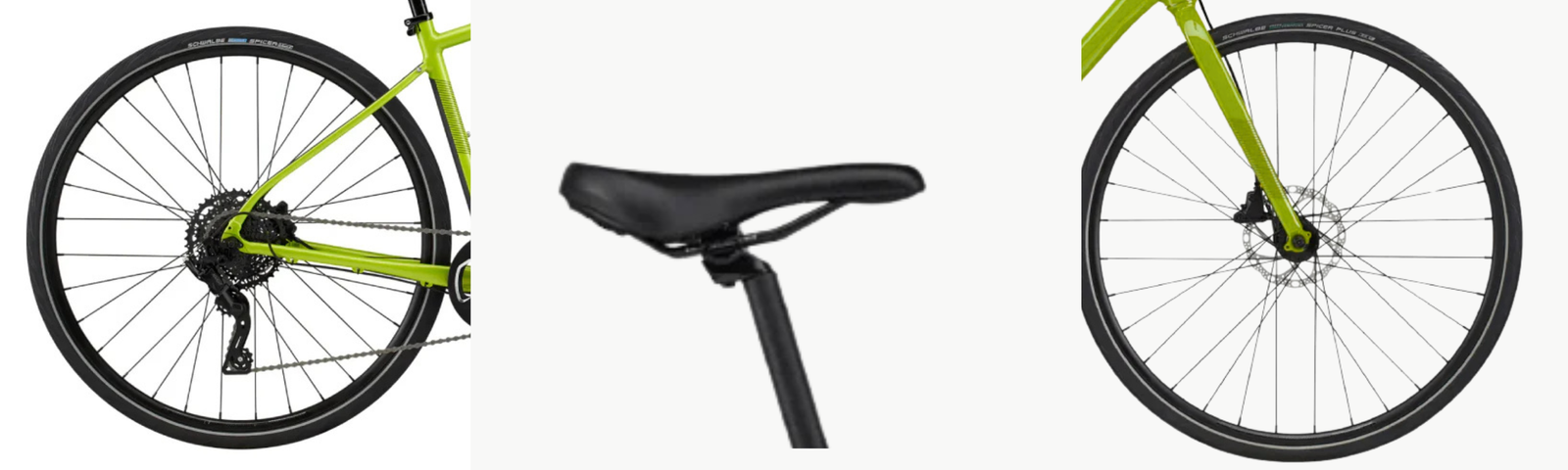 The 700×35c tires roll smoothly, offering a good mix of grip and speed. Wheel stability enhances confidence on diverse urban surfaces. Strong rims contribute to durability and longevity. The saddle supports daily rides and longer fitness routes with comfort. Overall traction and stance feel secure. The combination delivers a composed, enjoyable ride.