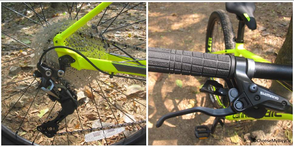 The Shimano Hydraulic Disc brakes on this bicycle are powerful and best suited for fast trail riders.