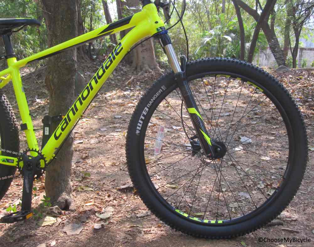 This bicycle rolls on a pair of WTB Ranger Comp 27.5” x 2.25” MTB tires. These tires were filled with heavy tread buttons and spaced out perfectly. The treads on the sides help get balanced traction even while cornering. These rims and tires are tubeless ready and can be converted into a tubeless anytime by using a sealant. The stock Cannondale Stage 3 saddle is built for trail riding as they are wide enough to keep you comfortable and also has the perfect amount of padding. The overall ride quality was fast and comfortable on trails.