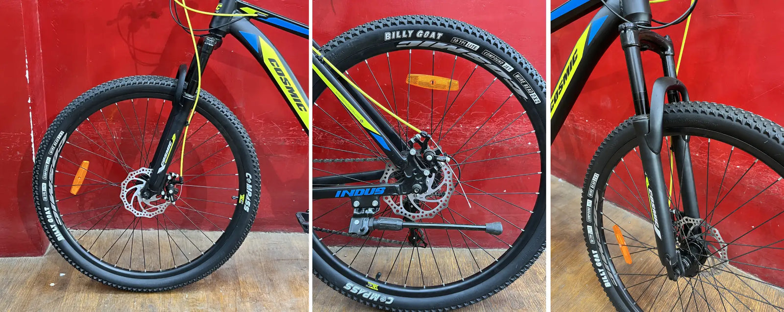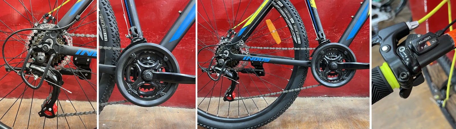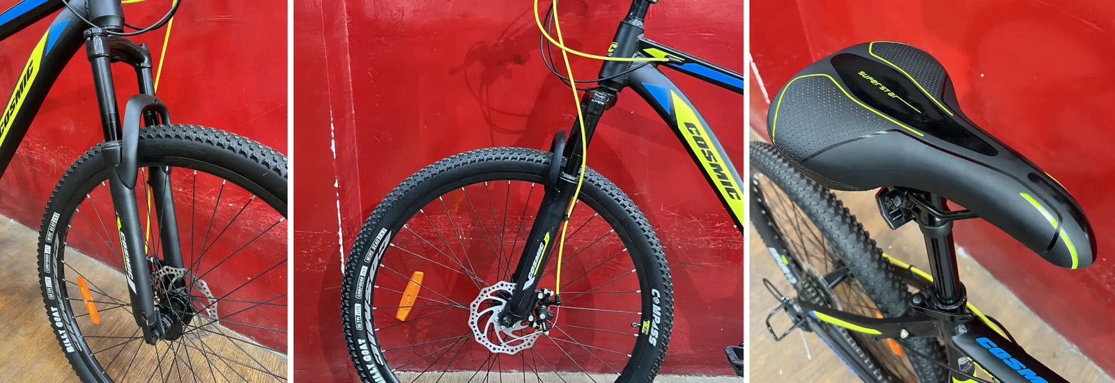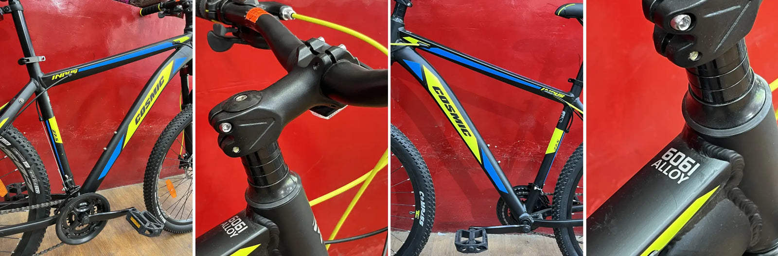 Cosmic Bicycles has established itself as a reputable brand in the Indian cycling market, offering a range of bicycles that blend affordability with performance. With a focus on catering to both novice and seasoned riders, Cosmic emphasizes durability, style, and functionality in their designs, ensuring a satisfying riding experience across various terrains. The Cosmic 27.5 Indus AL 24-Speed is engineered for cyclists seeking a versatile ride capable of handling both urban commutes and off-road adventures. Featuring a sturdy steel frame, 24-speed drivetrain, front suspension fork, and dual disc brakes, this mountain bike is designed to deliver a balanced mix of comfort, control, and efficiency.