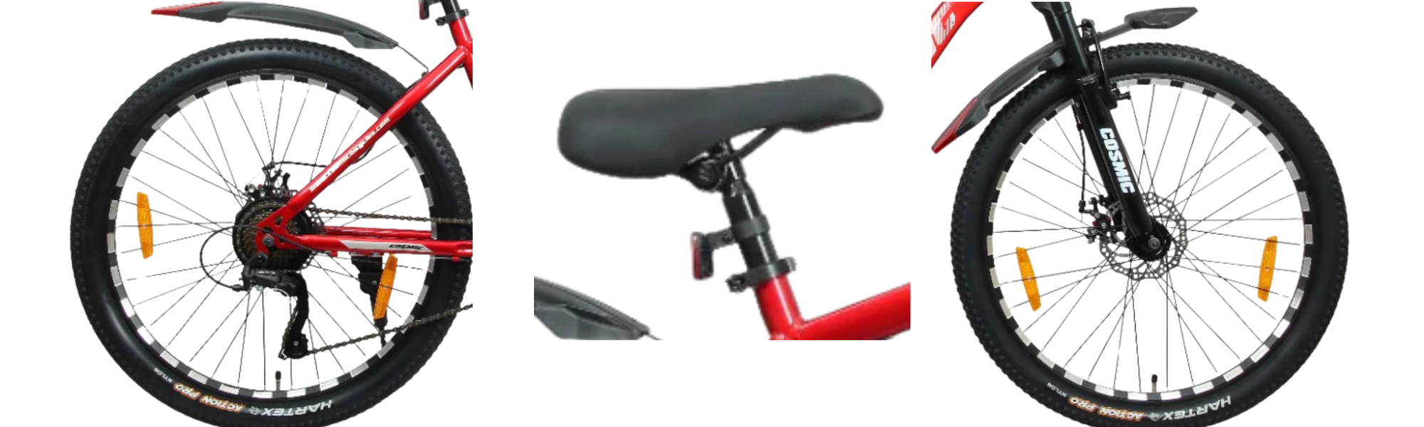 Dual disc brakes (front + rear) are a strong feature in this segment. Compared to rim brakes or V-brakes, discs give better stopping power, reliability in wet/dusty conditions and improved modulation. That’s a real plus in diverse riding conditions (Indian urban + semi-rough roads).