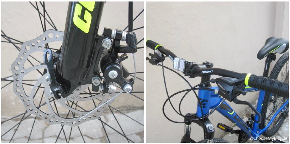 A pair of mechanical disc brakes handles the Crux 29's stopping power. These brakes are perfect for flat trails and felt safe and balanced when cornering. These brakes are more than sufficient for city riding in traffic. The brake levers were at a good reach and responsive.The Cosmic stock handlebar was wide enough to give control over the bicycle and the minimal raise made sure the rider also gets on to a comfortable riding posture.
