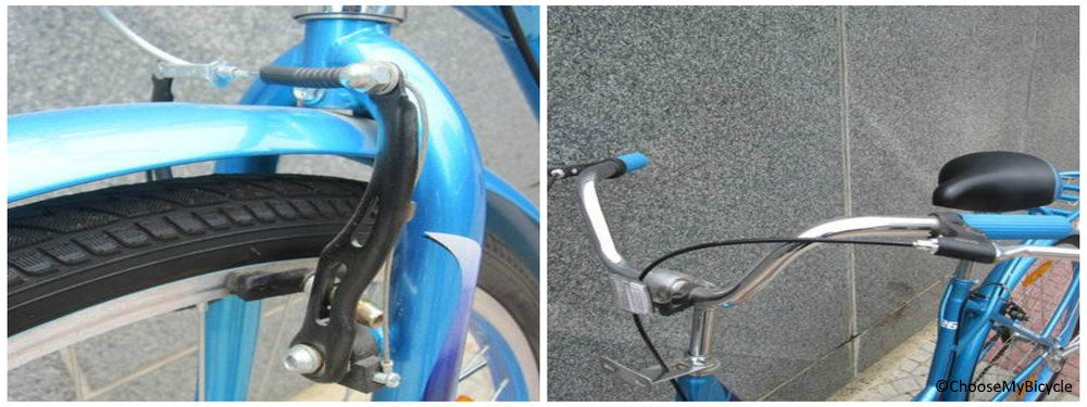 The Cosmic Glam 26 (2016) comes equipped with steel V-brakes, which were okay. The brakes could do with some tinkering to provide additional stopping power. That said, given that this bicycle is meant for city commuting or short leisure rides, the stopping power of the existing brakes is sufficient. The handlebar on this bicycle is what makes it unique, among other women's bicycles in the market today. The bicycle comes equipped with a large handlebar that has accentuated curves which paves way for a comfortable relaxed grip, and an upright and very relaxed riding position.