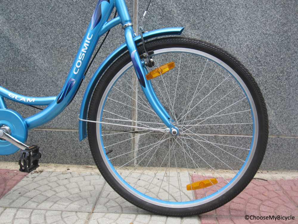 The Cosmic Glam 26 is made using a traditional steel frame. Though steel tends to add to the weight of a bicycle, the smooth welding on this frame makes it durable and long lasting. The Cosmic Glam 26 points to the fact that it is possible to make a simple no nonsense bicycle for the urban rider with the usage of steel. This bicycle has been designed for women riders who are looking for a complete upright, comfortable riding position. The low, step-through frame offers easy mounting and dismounting of this bicycle.