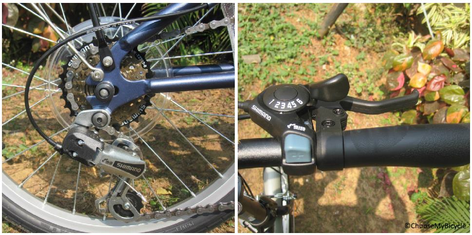 The Dahon SUV D6 comes equipped with a 6-Speed Shimano Tourney TY-21 Rear Derailleur whose shifting is controlled by trigger shifters. The derailleur worked smoothly enabling smooth shifting with no evidence of delays or lags. The transmission was seamless and efficient. The range of speed options is well suited for a bicycle aimed at city commutes. Additionally the large crank enables a better distance covered per pedal stroke ratio. The bicycle is surprisingly smooth and can be used for short city commutes and fairly longer distance leisure rides. The only point of concern in this department is the usage of Shimano Index shifters, which can take some time to get used to.