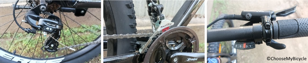 The 24-Speed gear combination was sufficient for riding on roads, rough trails and gradual climbs.