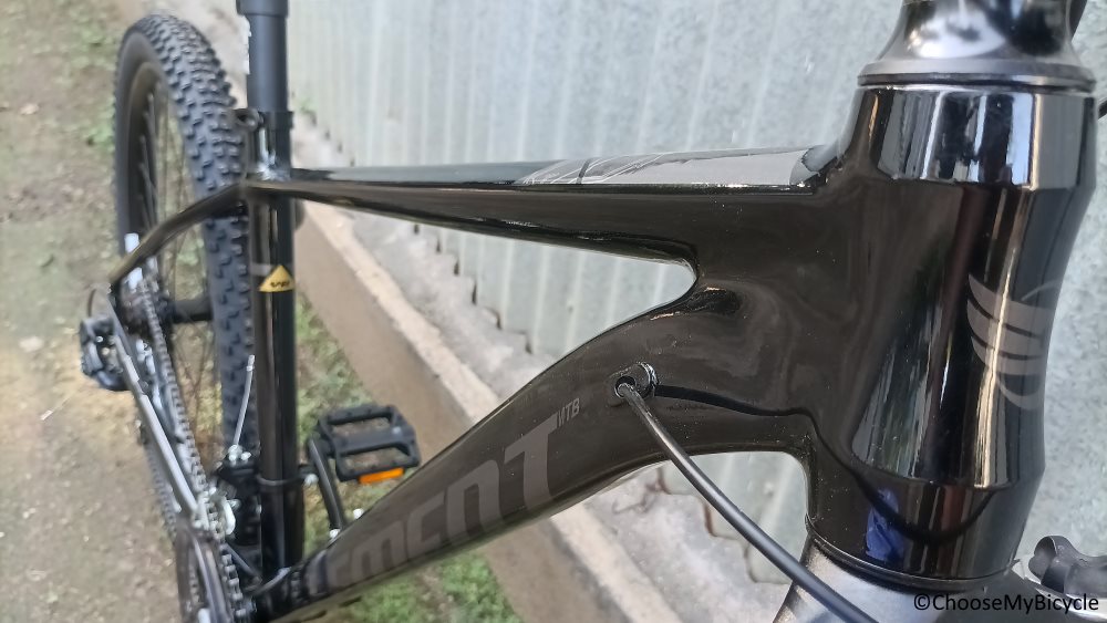 The Element Cyber Y8 which we test rode came in a full Black colour frame with subtle and minimal graphics and text. The gloss finish paint job was of the highest quality and looked shiny. The colour coded rims and saddle made the Bicycle aesthetic in appearance.