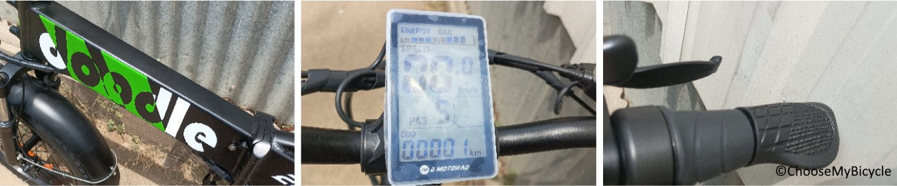 The EMotorad Doodle's stopping power is handled by Mechanical Disc brakes at the front and rear. This performance focused component provided powerful stopping power during the test ride.The handlebar on this E-Bicycle was of the perfect length to give a comfortable riding posture and easy manoeuvring. The grip throttle on the right was smooth and easy to use to accelerate. This handlebar is adjustable in height and can also be folded.