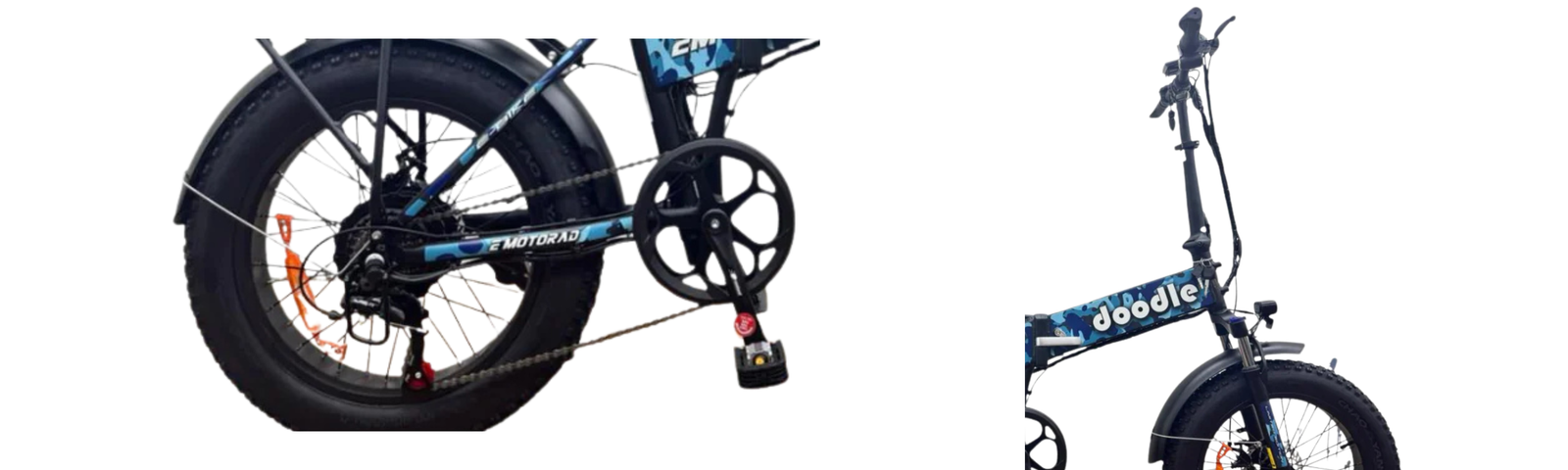 The EMotorad Doodle V4 is a bold, compact electric bike crafted for riders who love adventure in a fun, portable, and power-packed form factor. Designed as an all-terrain e-bike with fat tires and a rugged build, it combines electric thrill, convenience, and modern performance. EMotorad positions it as a “go-anywhere e-bike” built for city rides, beach runs, camping trips, farm roads, and everything in between.