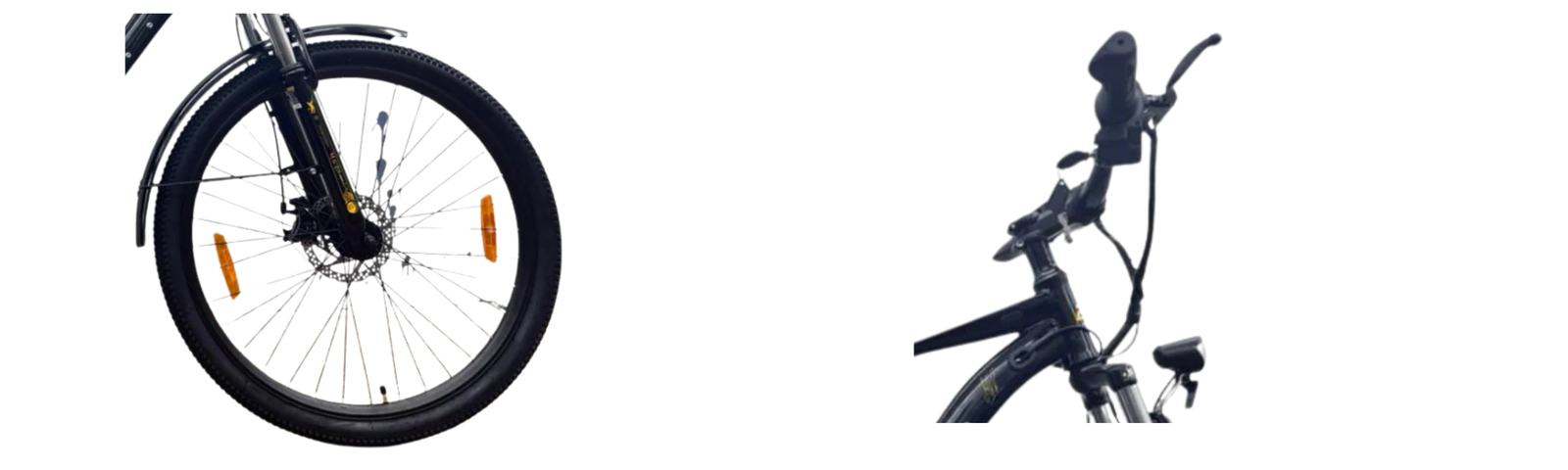 The wheels are 27.5″ with relatively wide tyres — very good for grip and ride comfort on city roads.