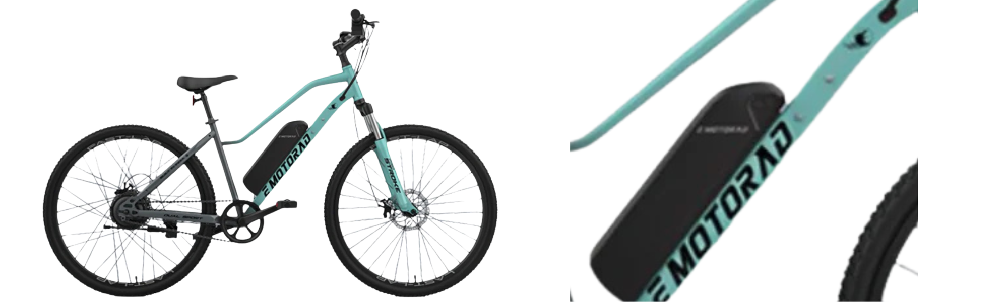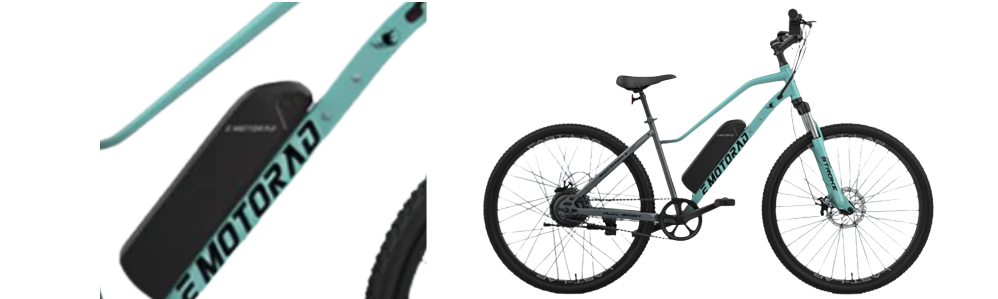 The EMotorad X2 is powered by a removable 36 V / 7.65 Ah lithium-ion battery pack that fits neatly into the frame for clean ride aesthetics and easy access. Charging takes about 3-4 hours from empty to full, offering convenience for daily use and overnight replenishment.