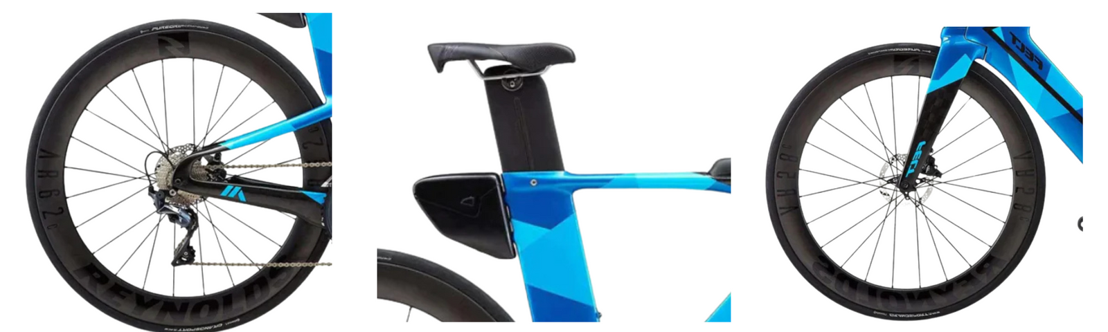 While The Bike Affair listing doesn’t specify wheels or saddle, the platform is wheelset-agnostic—allowing customization to match race strategy or local terrain. The stock setup often comes with light, stiff carbon race wheels and a tri-specific saddle designed for sustained aero position. The frame’s tubeless-ready system supports modern high-performance upgrades.