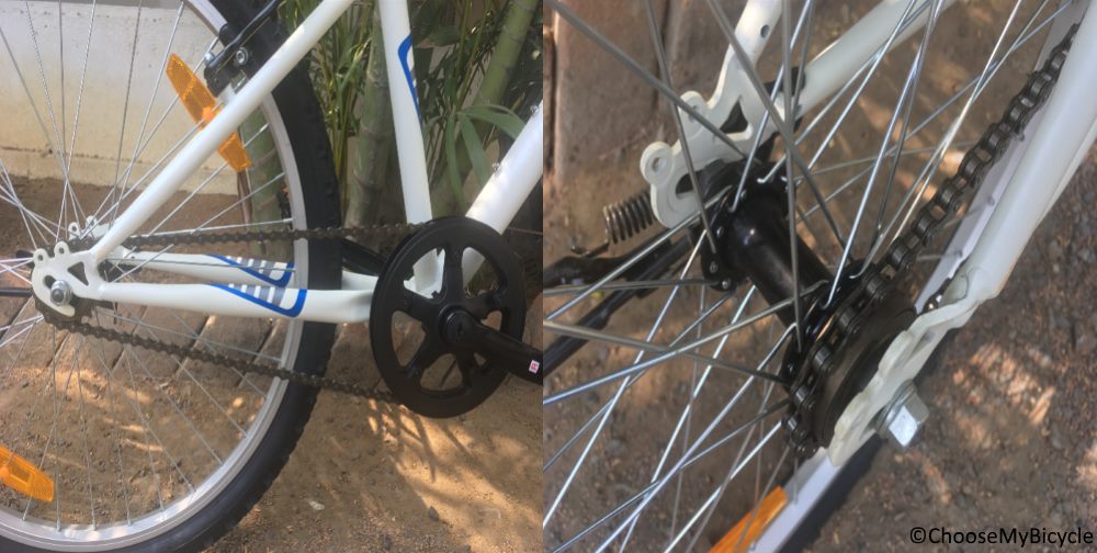 The Firefox Axxis 24 comes with a single-speed drivetrain. The stock crankset contributes towards smooth pedaling on urban roads and rough surfaces. Acceleration and slight inclines would require extra effort but other than that this bicycle is easy to pedal and is very low maintece.