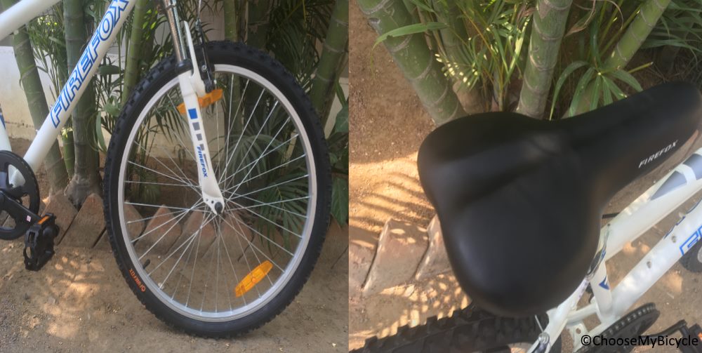 The Firefox Axxis 24 comes with a strong Steel frame. The top tube on this frame has a slanting top tube which made sure the rider gets extra stand over clearance when riding over rough patches. The frame is responsive and clearly feels like it can take in the hard hitting of the rough surface. The front suspension fork is basic and has a minimal 4-5mm travel to take in some amount of vibration from the surface.