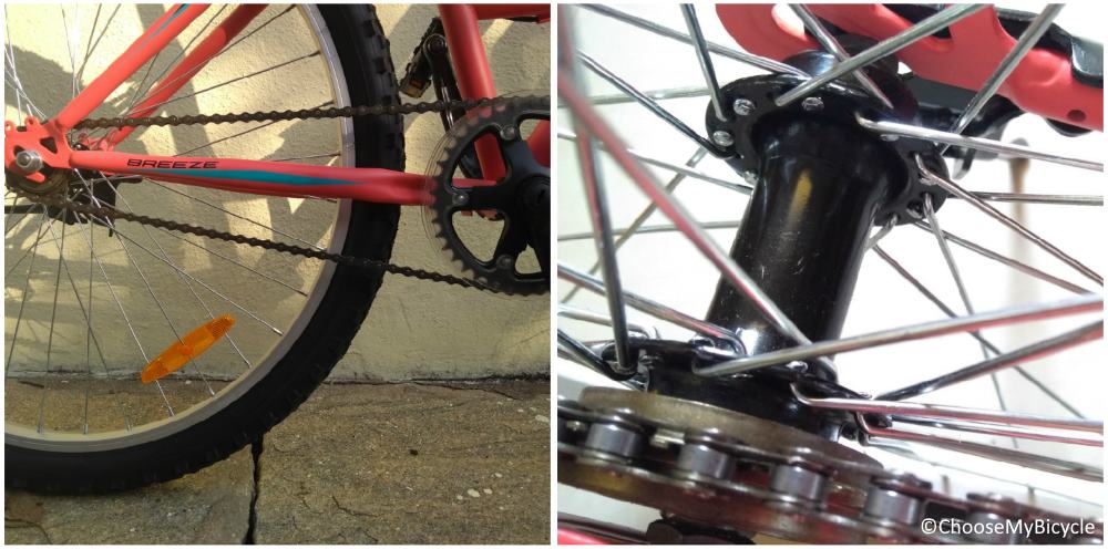 The Firefox Breeze 26” has been designed keeping simplicity in mind. The welding on the edges of the frame looked simple and neat. The bicycle we test rode came in a peach-pink with a matte finish and blue and black decals. The overall look of the bicycle is simple and eye-catching. Additionally, there are options to mount mudguards on this bicycle.
