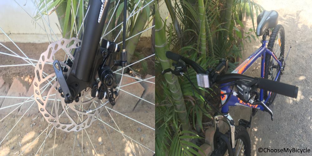 The stopping power on this 27.5” hardtail MTB is taken care of by a pair of JAK branded Mechanical Disc brakes. These brakes are an upgrade from the V-brakes seen on the 26” Fusion and were powerful in stopping amidst traffic and even on flat muddy surfaces.The 66mm MTB handlebar was wide and gave optimum control for the rider when riding through fast paced flat trails and also when maneuvering through traffic on urban roads.