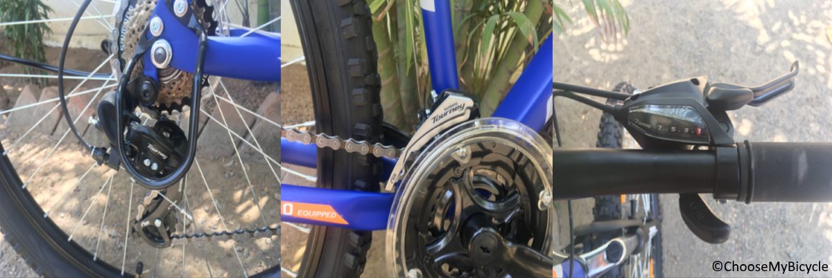 This bicycle comes with Shimano's 21-Speed entry-level Tourney derailleurs