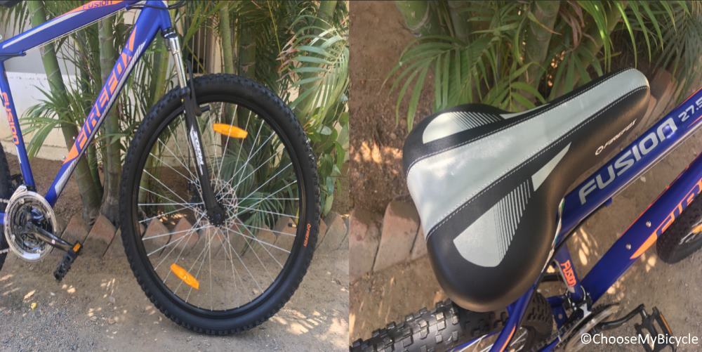 This bicycle which I test rode came in a full Blue colour with Orange and Grey graphics. The bulked up bottom tube and triangular shaped top tube makes this bicycle look sharp. The welds were neat and weren’t too prominent at the joints. The matte finish paint job was of top quality and definitely made the bicycle look premium.