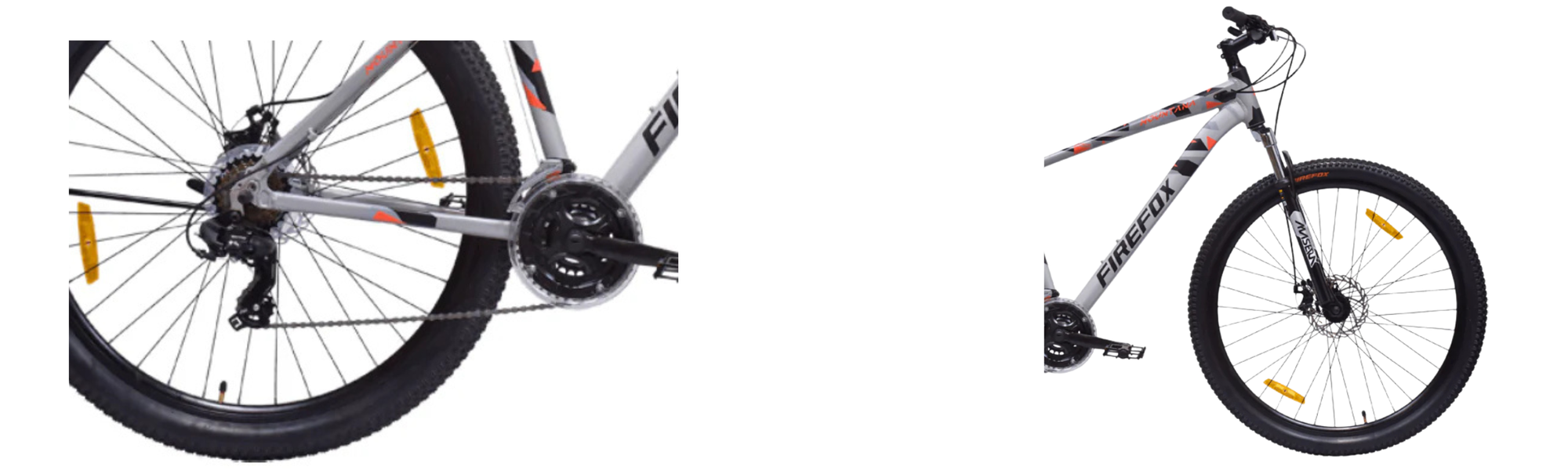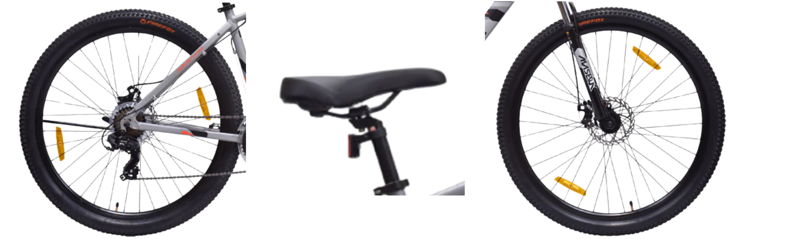 The 29×2.10 tyres from Firefox’s MTB line feature a mixed-tread design for grip and efficiency — suitable for both paved and unpaved routes. They balance rolling resistance with traction, making the bike usable for commuting, fitness, and light trail rides alike.