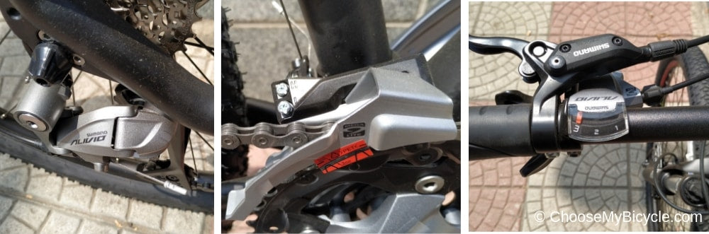 The Firefox Mountrail comes equipped with a Shimano Acera front derailleur and a Shimano Alivio rear derailleur. While on the test ride there was no evidence of a lag in the gear transmissions. The shifting is controlled Shimano Alivio shifters, the 27-Speed shifting worked seamlessly with crisp and clean shifting. However, the placement of the shifters on the handlebar did require some efforts to reach, and a slight extra push.