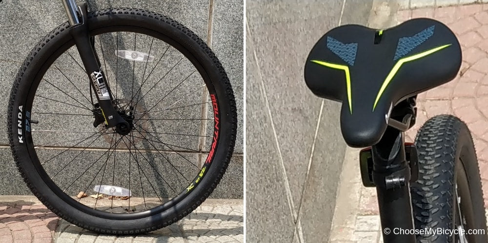 This bicycle comes equipped with Kenda K114A 27.5” x 2.1” tires. These tires are attached to double-walled Alex Alloy Rims. Furthermore, these tires are tubeless-ready. These tires are a perfect mix of speed and traction, which are ideal for harsh trails. On softer mud trails, these tires could roll over efficiently without sinking in. The stock saddle on this bicycle is perfectly designed for the trail rider. The ergonomic design makes sure soreness is the last thing you would have to worry about on an already shaky trail.