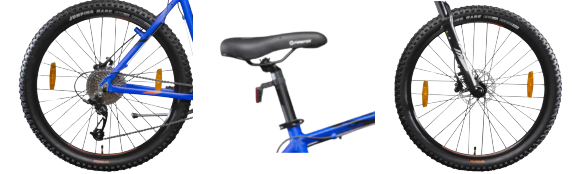 The handlebar’s width and height balance provide excellent steering leverage, while the ergonomic grips reduce fatigue on long rides. The saddle is designed with a mid-density foam contour, comfortable for commutes yet firm enough for trail support.