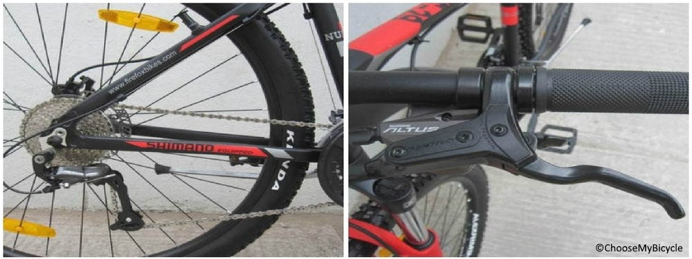 The Nuke D 29er comes equipped with Altus at the front and rear as derailleurs. These are 2nd in hierarchy from the bottom in the Shimano MTB gearing line. During the test ride these gears did perform well and without any lags and glitches. But there was a time on slightly longer/flatter patches when we felt the need for a slightly quicker gear transmission and a Shimano Acera at least at the rear could have helped bridge this gap. Considering the price of this MTB it is reasonable to expect a minimum of Shimano Acera at both the front and back.