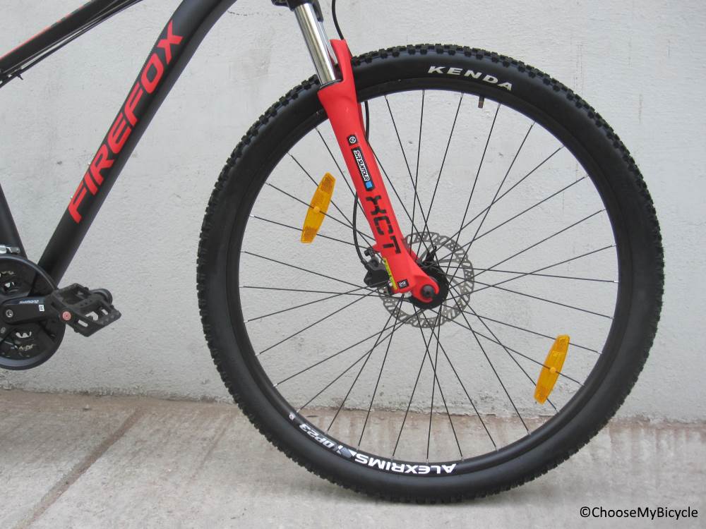 The Firefox Nuke D comes with an alloy hardtail frame, which is top notch in terms of build quality and geometry. The alloy material has been used cautiously in a manner to make sure the most sensitive points on the frame, which might experience the most vibrations, have extra reinforcements. At the same time, the tubes in between are relatively smaller in circumference, which reduces the weight of the frame a little bit.Being a performance-focused hardtail MTB, the suspension plays a big role in the ride quality of this bicycle on trails. The SR Suntour front suspension fork comes with a massive 1mm travel, which worked to its limits during the test ride. The hydraulic lockout was quick and easy to use and helped ride faster on flatter patches on the trails.