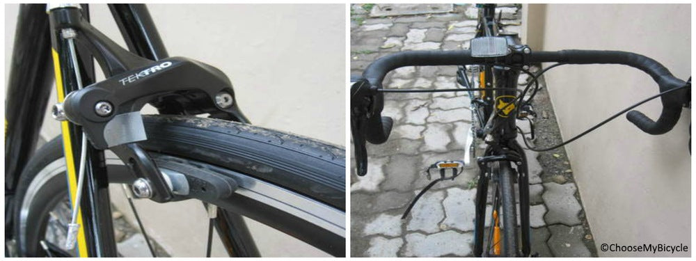 Like majority of road bicycles in the market, the Sirocco also came with a pair of V-brakes. The Tektro brakes were sharp during the test ride. Along with the Shimano 35 STI integrated brake levers these brakes stopped quickly and also felt balanced during the test ride. The brake components were compact and lightweight which is good for a road bicycle. The Zoom alloy road bicycle handlebar measured 27.2 x 3mm. This wide handlebar was perfect for beginners to get used to the road bicycle body posture. The relaxed and comfort oriented handlebar position will make long distance rides an easy affair.