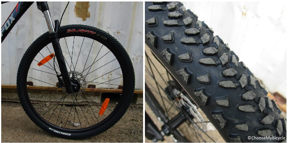 The Kenda K114 27.5" x 1.95" tires were heavily treaded but lacked some width
