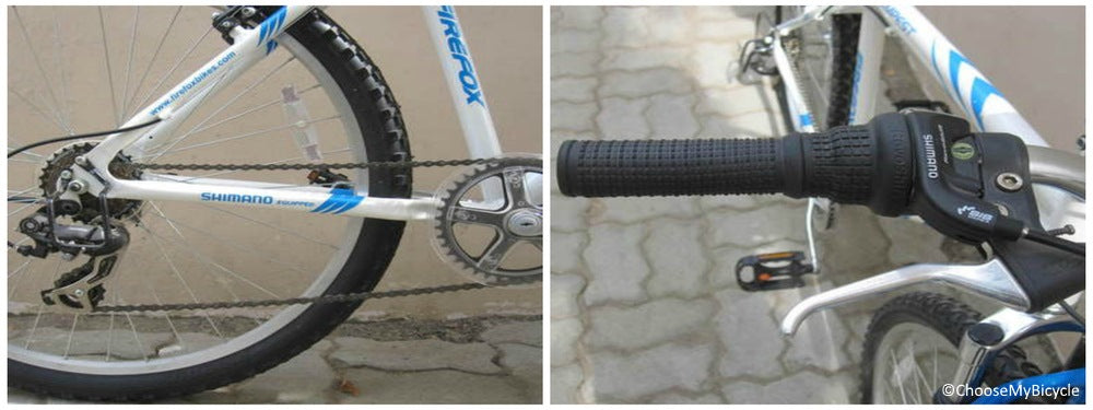 The Firefox Tempest 6s comes with a Shimano Tourney TX3 rear derailleur. This is the most basic gearing in the Shimano MTB/Hybrid hierarchy. Shimano RS35 rotor shifters control this rear 6-speed derailleur. These shifters are scarcely seen these days on bicycles in the India market. Even though it might sound outdated, these rotor shifters are still functional and easy to use. During the test ride this gearing component worked well enough to get going on city streets.